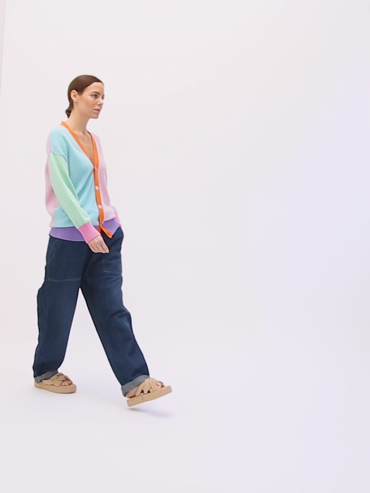 Elevated boyfriend-style cardigan in mid-weight (2-ply) pure Scottish cashmere. Shaped drop shoulders and cuff-length sleeves.