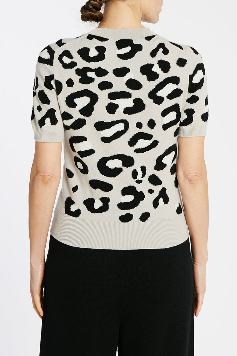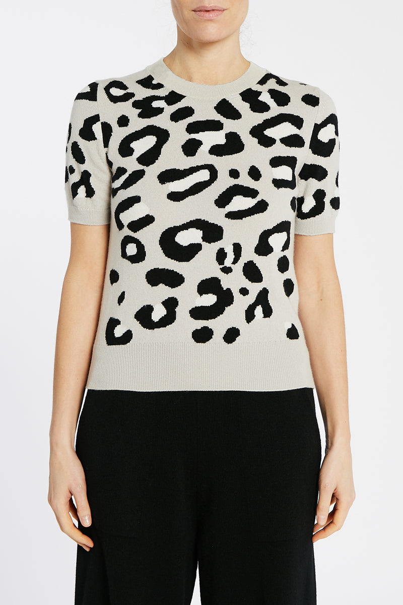 Our classic short sleeve t-shirt shape top. in all-over leopard hand intarsia, lovingly and expertly crafted by our experts at Barrie knitwear in Scotland
