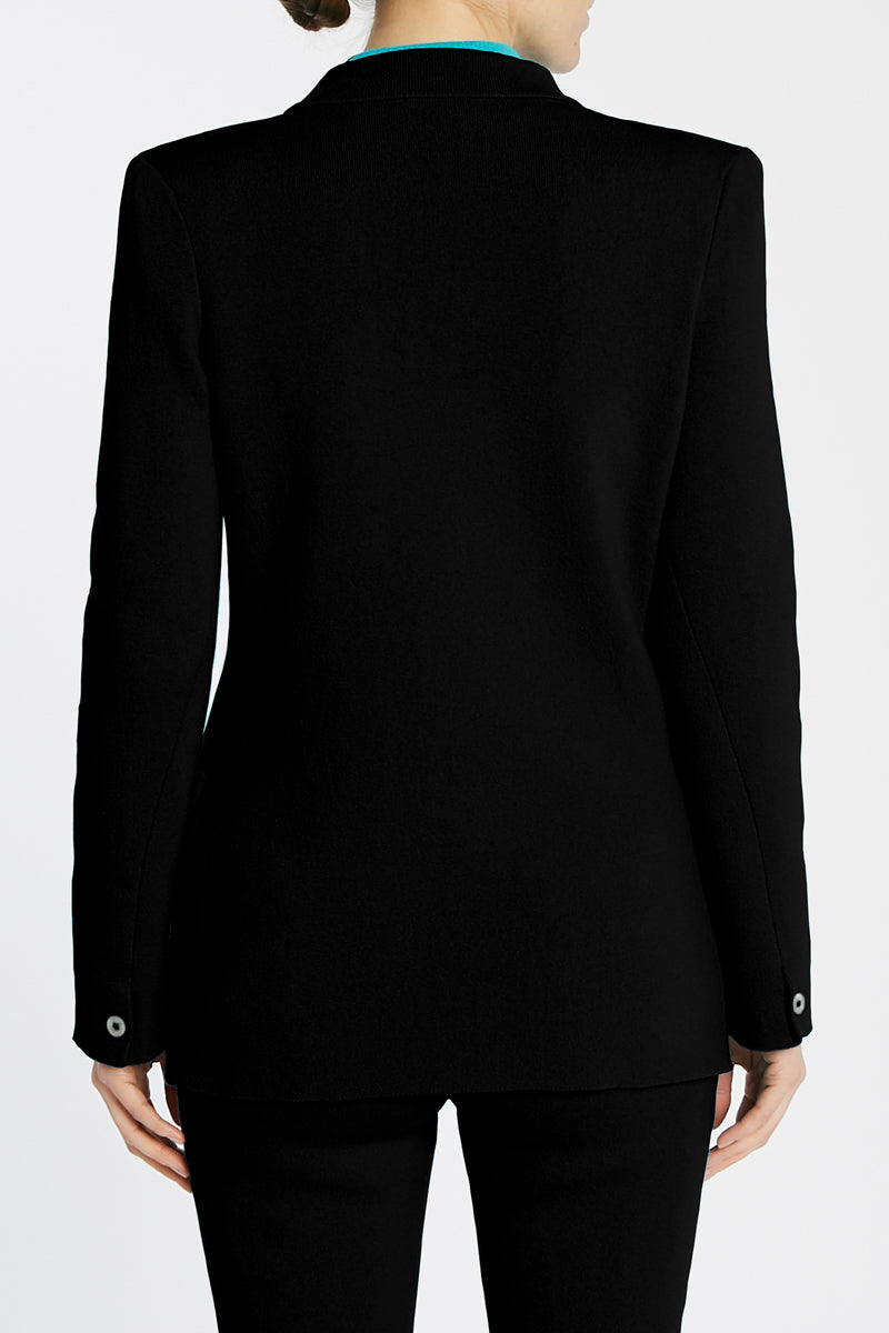 Our cashmere blazer, knitted in interlock stitch laced with elastane for a compact fit that allows it to be neatly 'tailored' with perfect clean edges. Sharp like a tailored jacket. but comfortable like a cardigan.