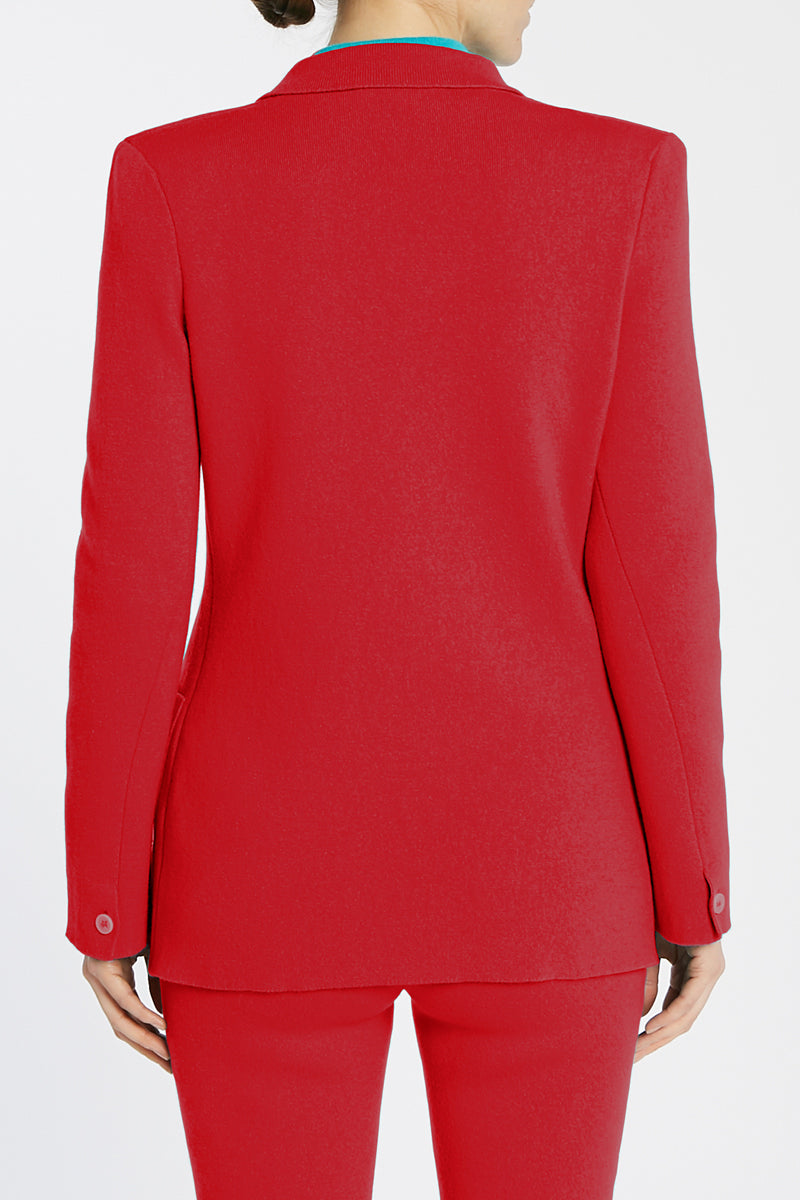 Our cashmere blazer, knitted in interlock stitch laced with elastane for a compact fit that allows it to be neatly 'tailored' with perfect clean edges. Sharp like a tailored jacket. but comfortable like a cardigan.